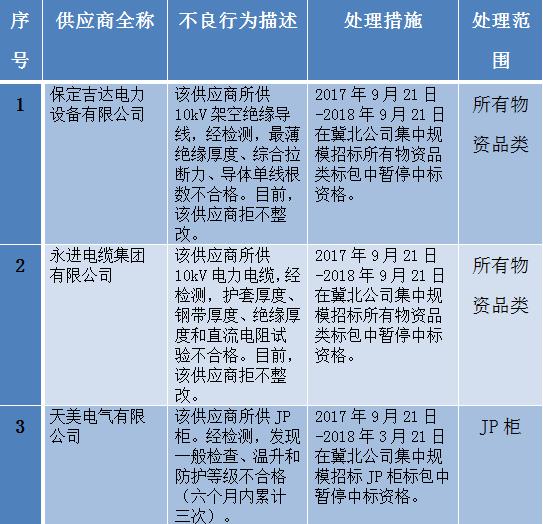 國網(wǎng)冀北供應(yīng)商不良行為處理情況的通報(2017年9月) ![]()